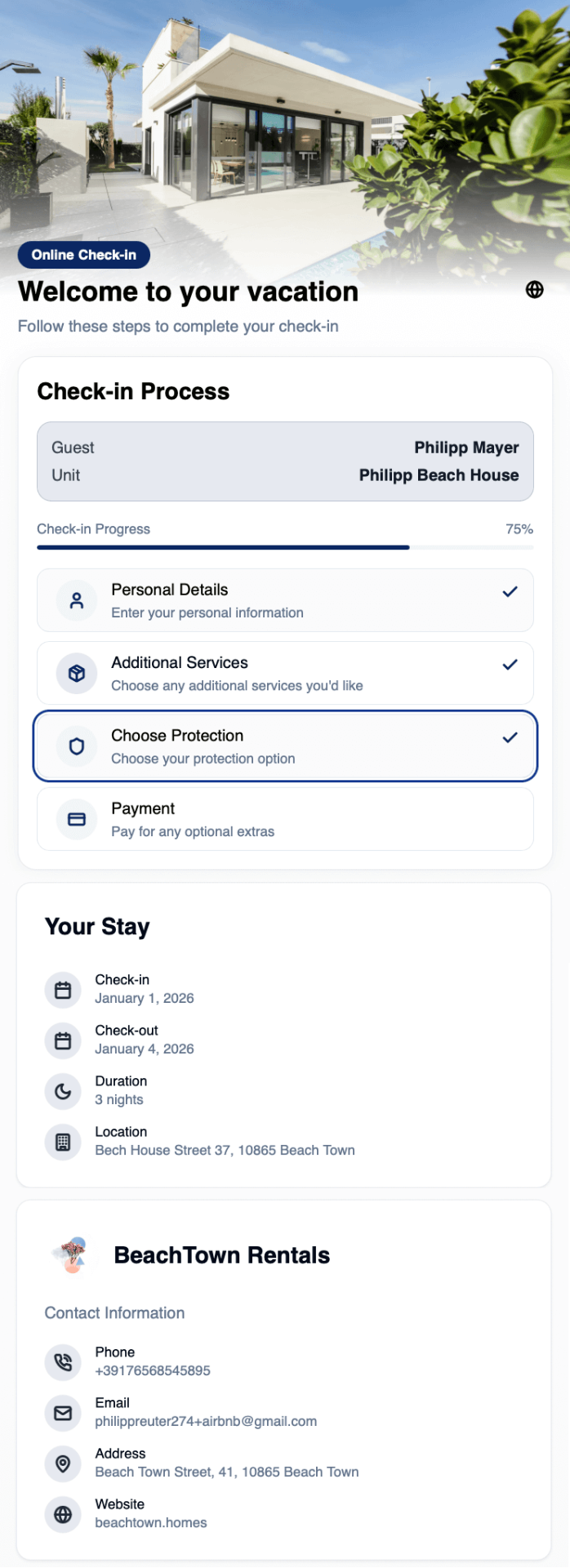 Check-in pour locations de vacances – automatisé, avec protection contre les dommages invités